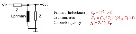 #1: At lower band end the transformer works as usual device where the primary inductance certain's the band end frequency fu. Fig.2 shows, the cut off