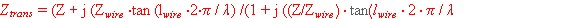 end.The length and the Z of the 2-wireline are the important parameters here. The usual tangents function of 2 pi / lambda is valid here.The transformed Z is :