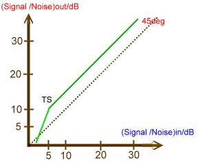 increase drastically. Fig.1 shows the typical Input Signal to Noise Ratio versus Output Signal to Noise Ratio diagram of an PLL- FM- Demodulator.