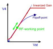 - But using the new circuit, the working point moves along the red curve, where the flip-off point is a few dB higher than in an usual AGC-Amp. circuit.