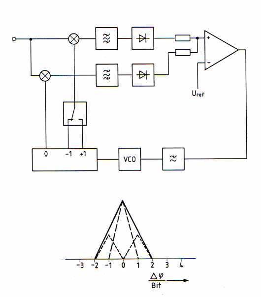 and the signal path is interrupted. In Fig. 3 is a new AKF-Loop shown where the lock-in range is twice. The total lock in process is now easier and faster.This broader AKF is reached by summarizing the output