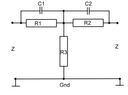certain impedance, which is bridged by two capacitors.