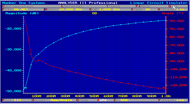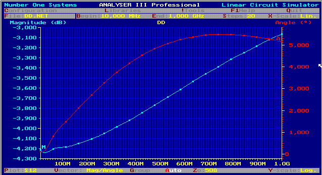 fig. 2 S12, S11, DD circuit using C1= C2 =15 pF; R1 = R2 = 12 Ohm; R3 =100 Ohm