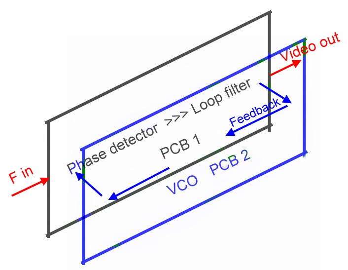 layout of the PLL is a sandwich of two small PCBs where the feedback signal flow is in the opposite direction than the