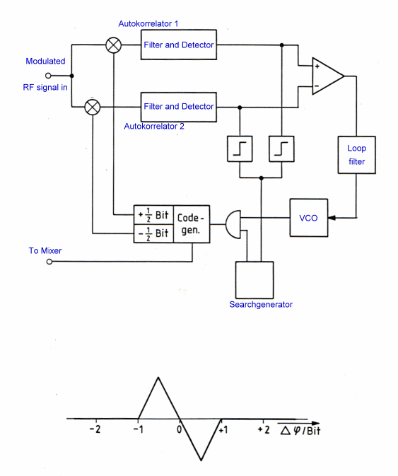 shifting of the code word versus the incoming code word has a control AKF-funktion of Fig.2 The linear look-in control range of the feedback is plus minus 1 bite.Outside this control function the loop may flip out