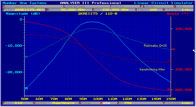 only on the loaded Q. But with the 2 resonator circuit, we have reached the goal, outsite band rejection = 15 dB at 7 Mhz distance from the tuned frequency fo.